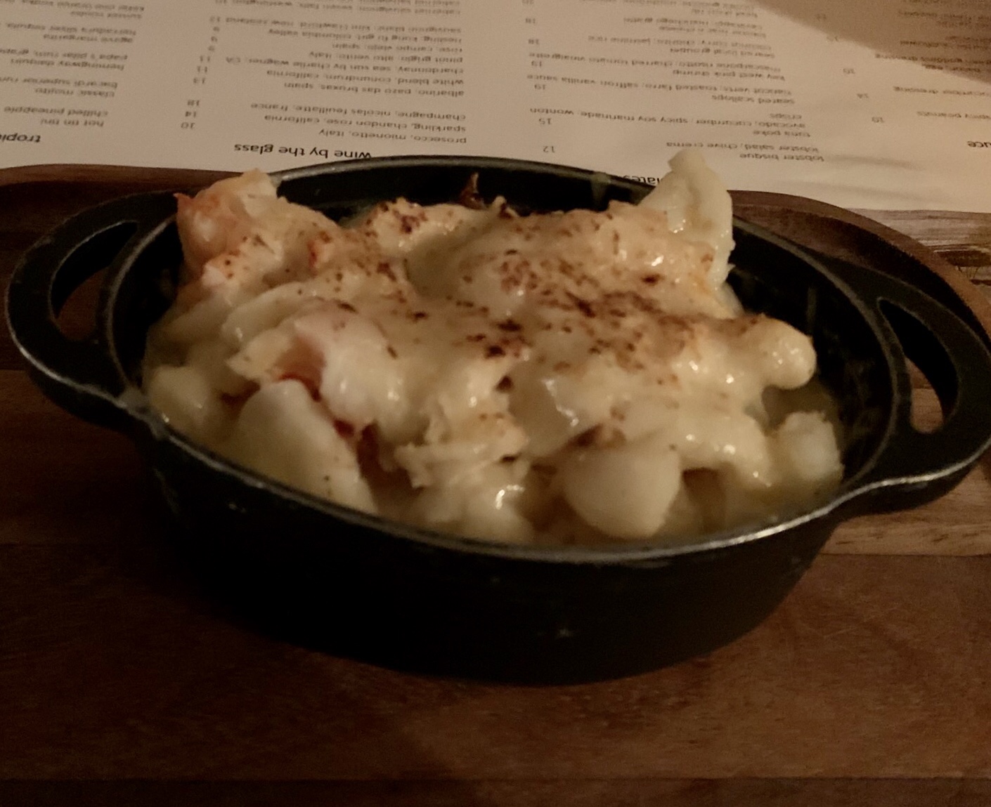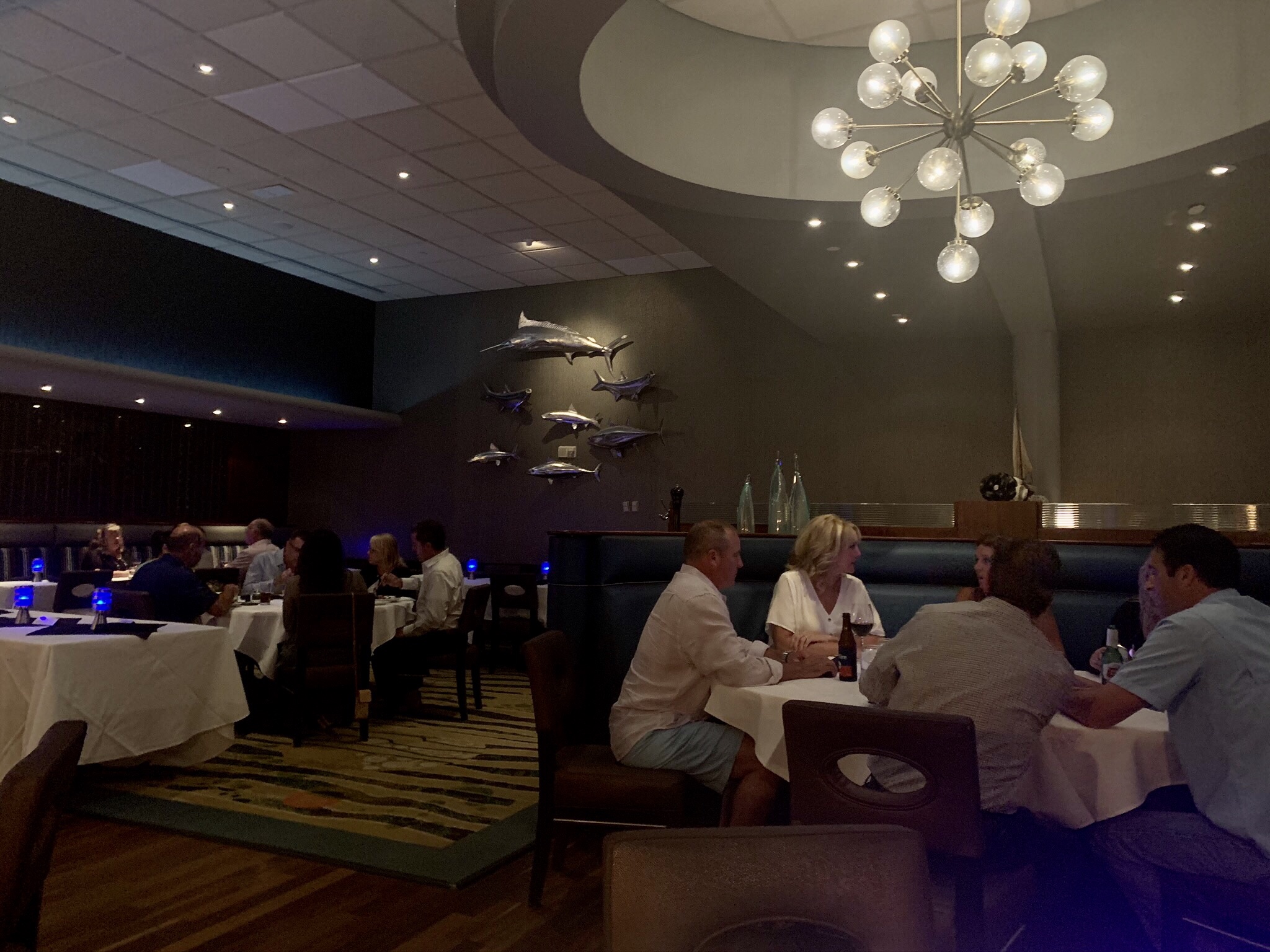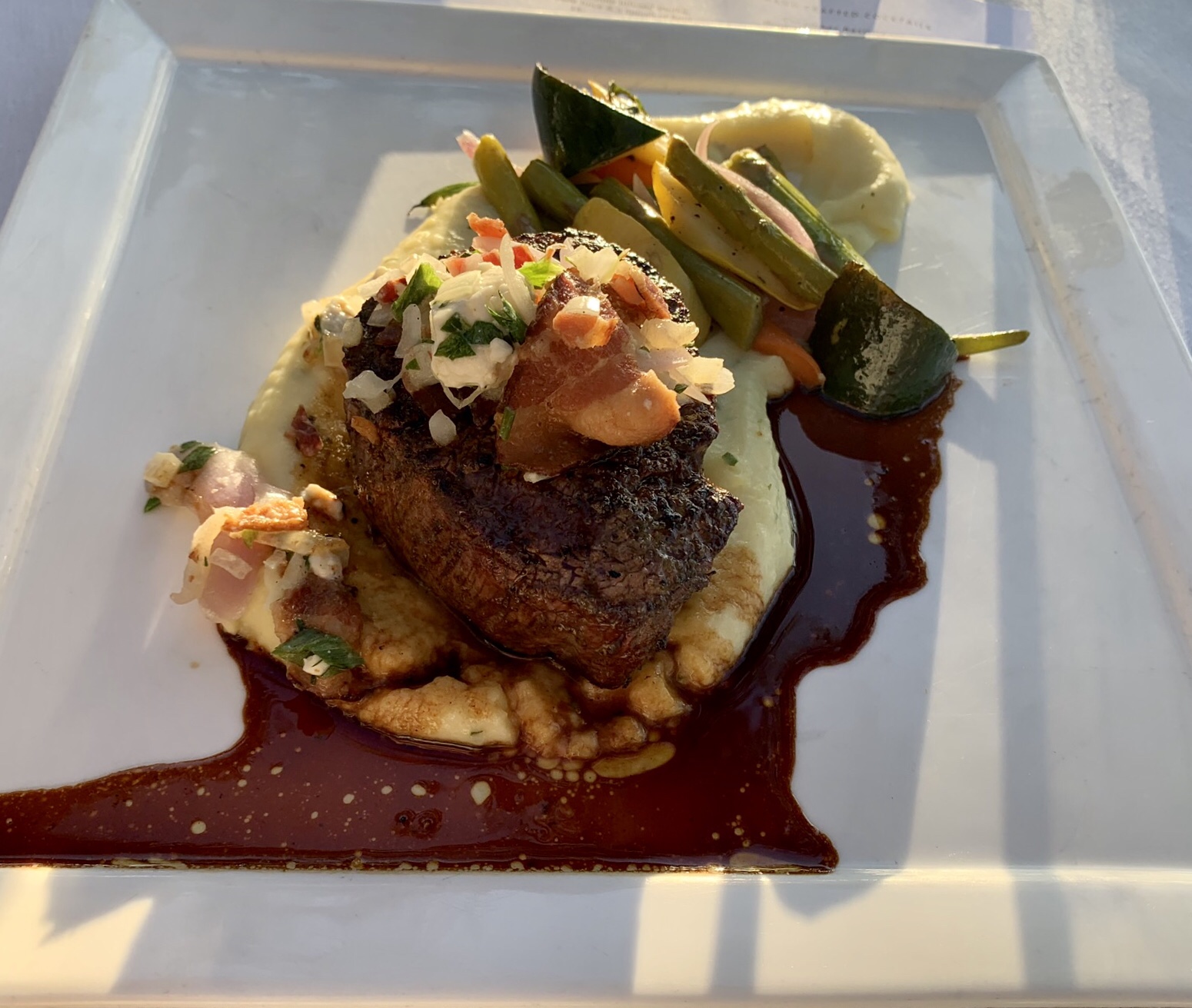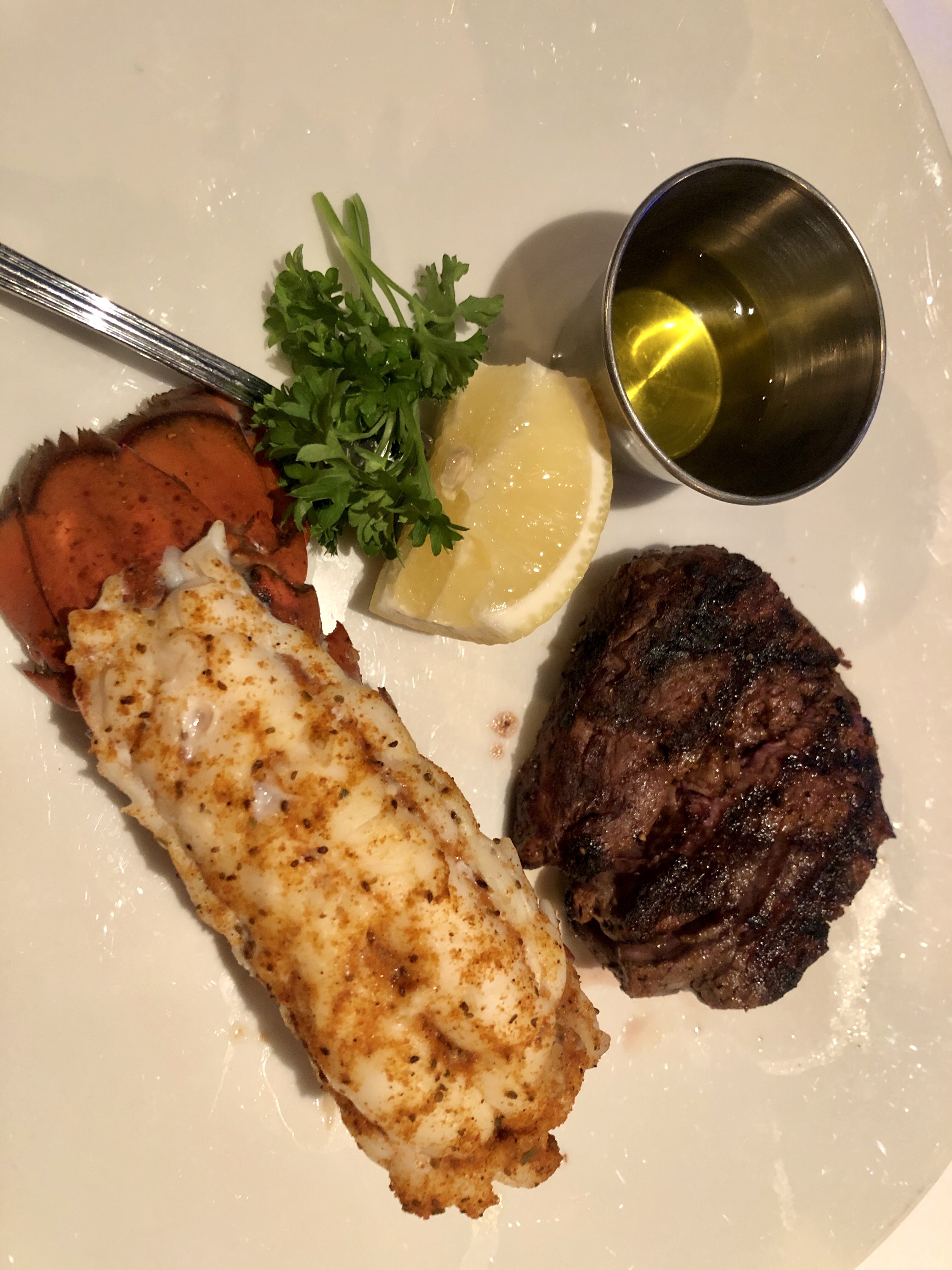 The service was impeccable and pleasant. They have a nice selection of interesting and unique crafted cocktails, so I ordered the “Hot tin tini” which was a chilled pineapple vodka infusion (and very good) and my wife ordered the Kim Crawford sauvignon blanc. We already knew what we wanted to eat so we ordered immediately (and we wanted to make sure we didn’t take too much time, it turned out that the service was so good it didn’t matter) and relaxed with our drinks and enjoyed the views and live music coming from the pier (with the exception of the occasional rum party boat passing by, which we always smile at because that’s just not our idea of fun but to each their own…).