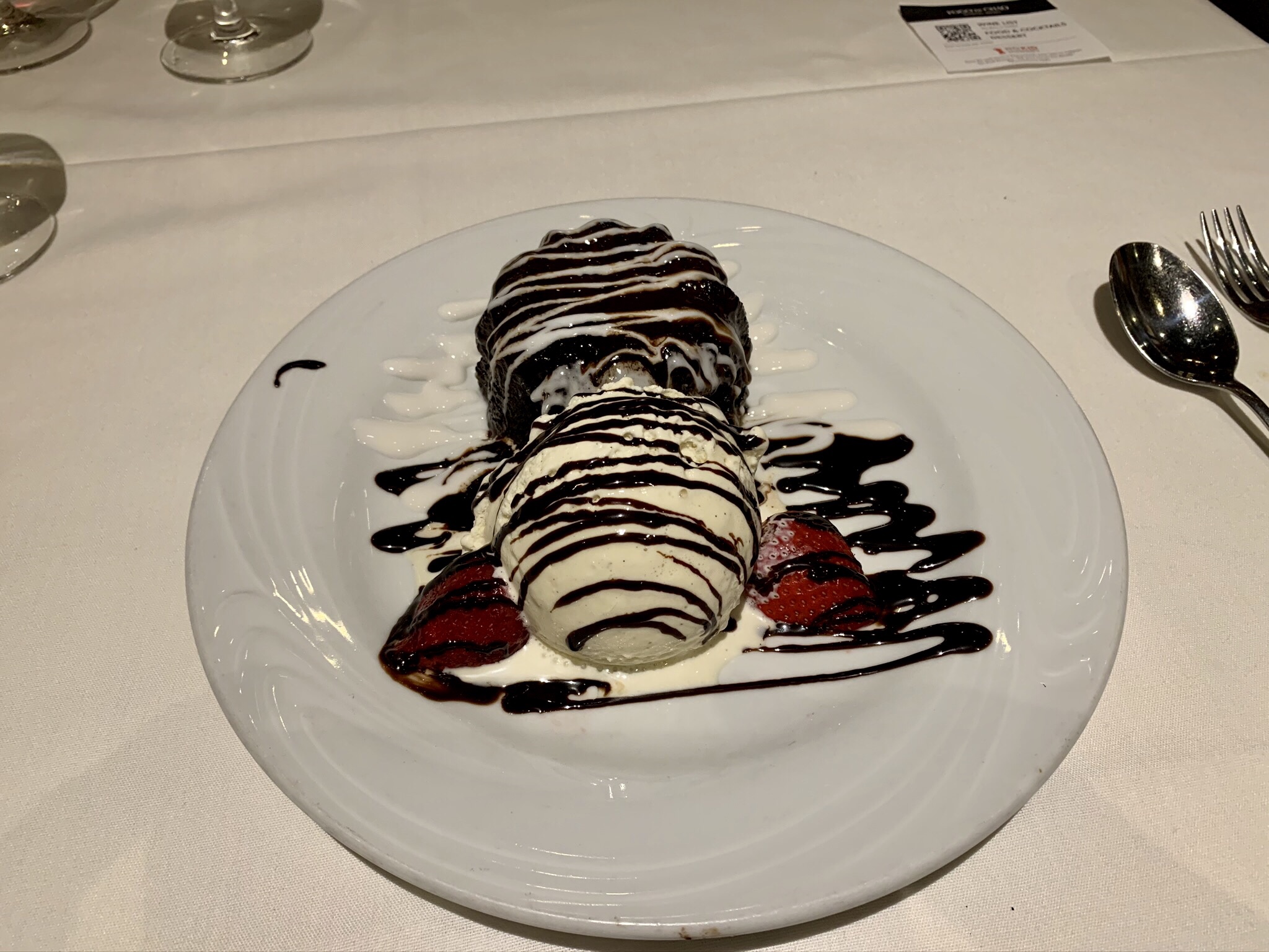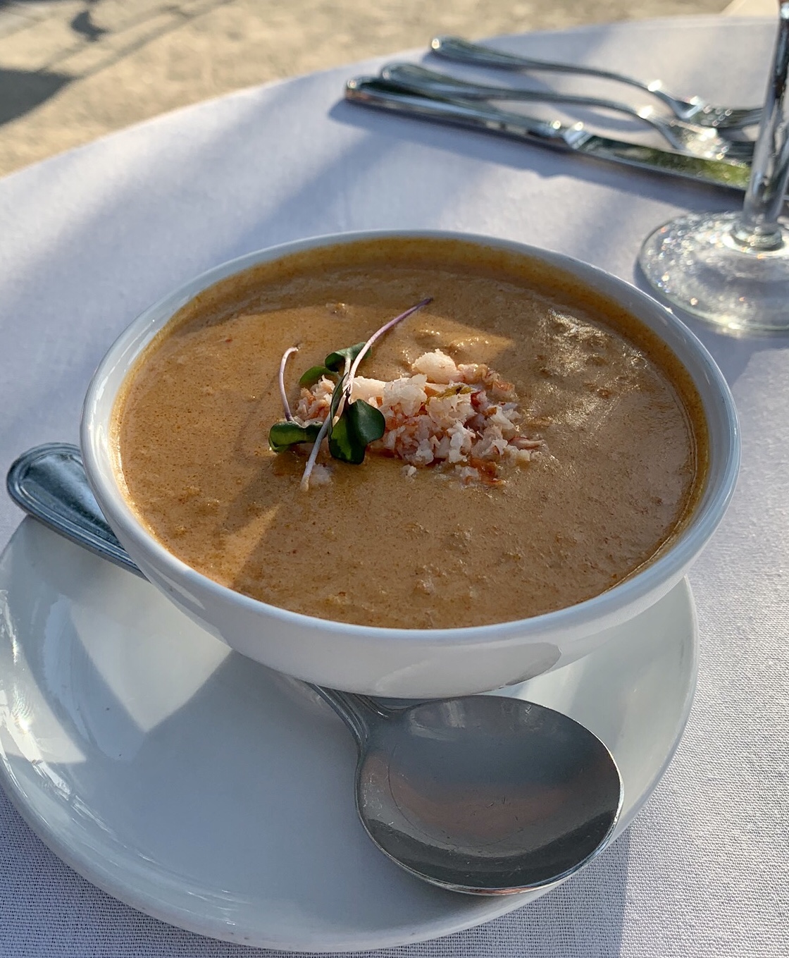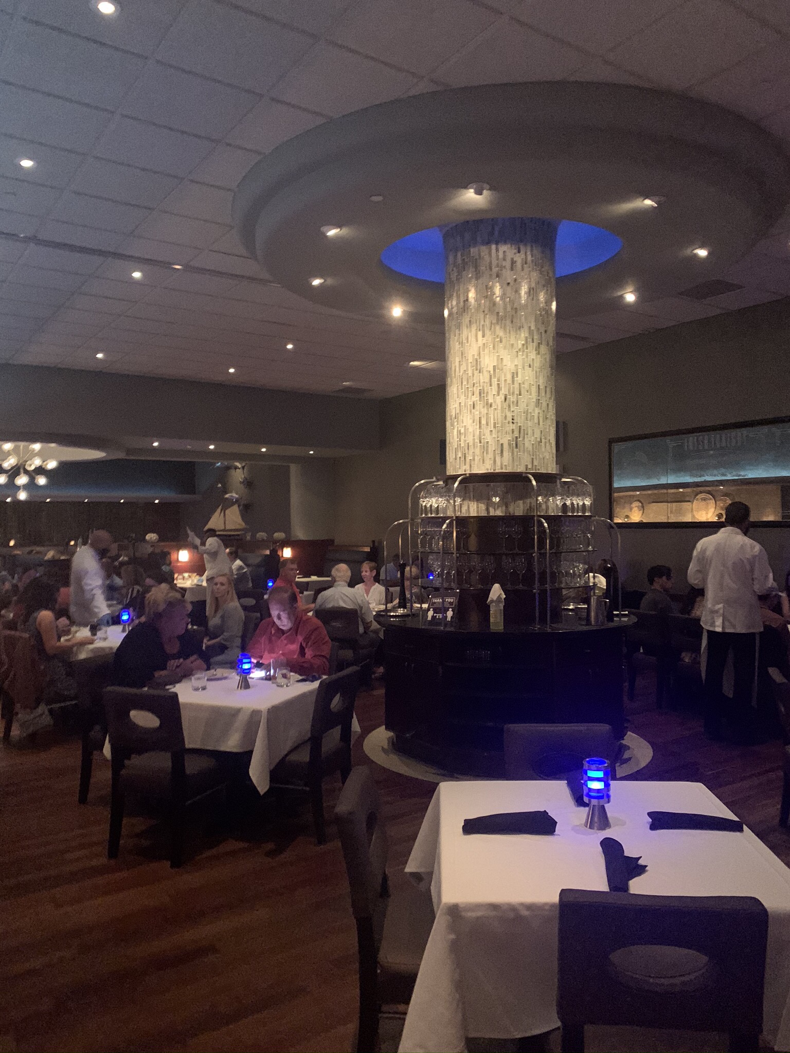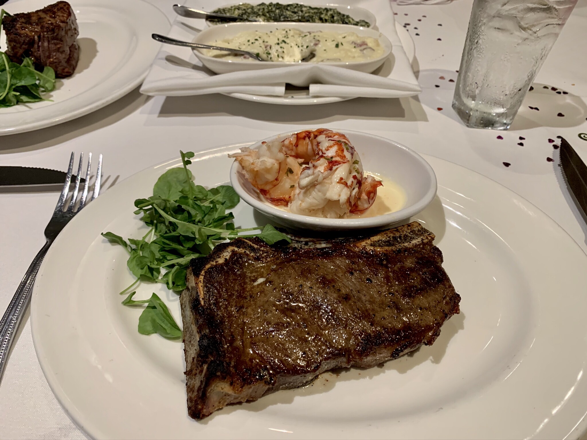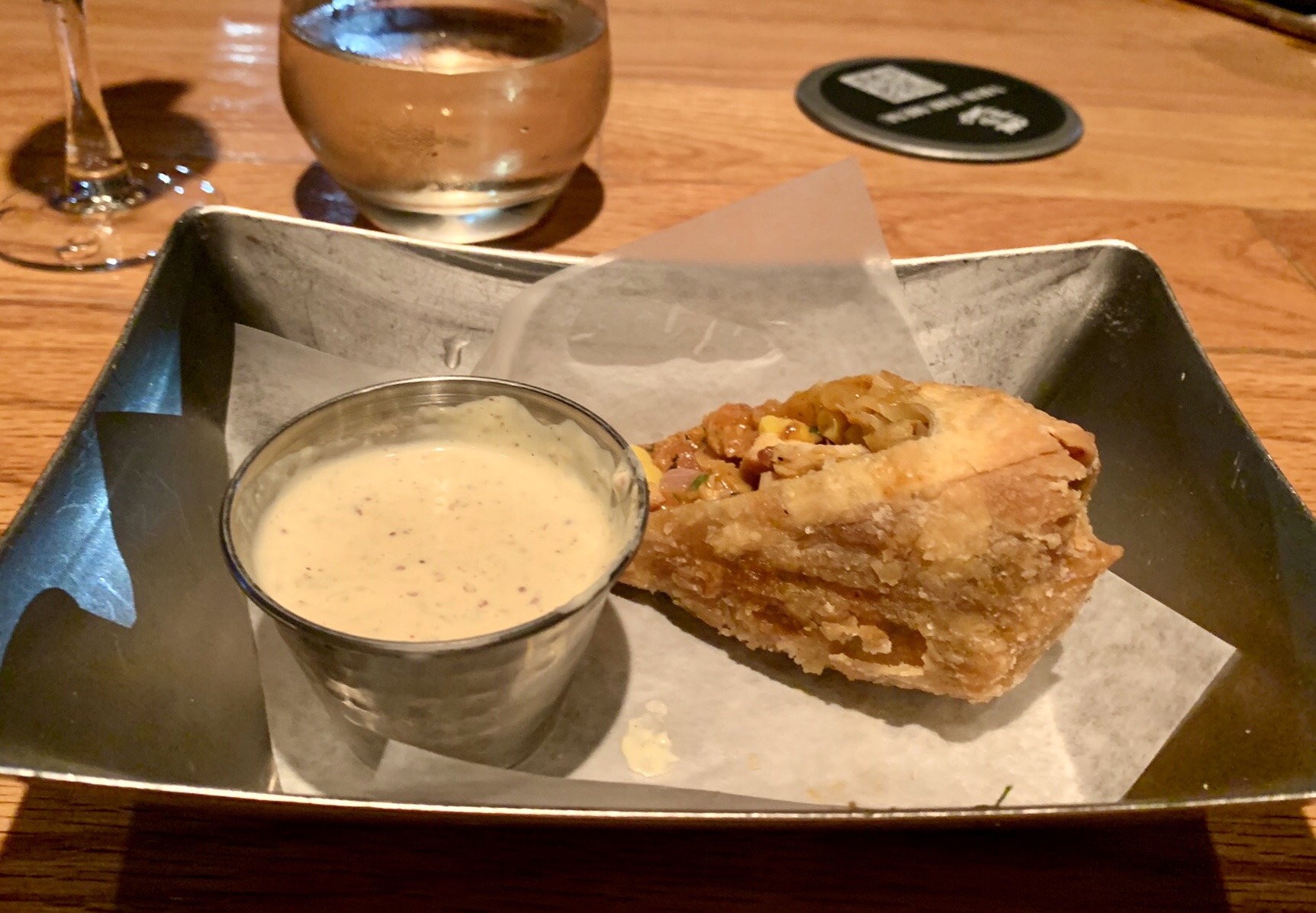 The service was impeccable and pleasant. They have a nice selection of interesting and unique crafted cocktails, so I ordered the “Hot tin tini” which was a chilled pineapple vodka infusion (and very good) and my wife ordered the Kim Crawford sauvignon blanc. We already knew what we wanted to eat so we ordered immediately (and we wanted to make sure we didn’t take too much time, it turned out that the service was so good it didn’t matter) and relaxed with our drinks and enjoyed the views and live music coming from the pier (with the exception of the occasional rum party boat passing by, which we always smile at because that’s just not our idea of fun but to each their own…).