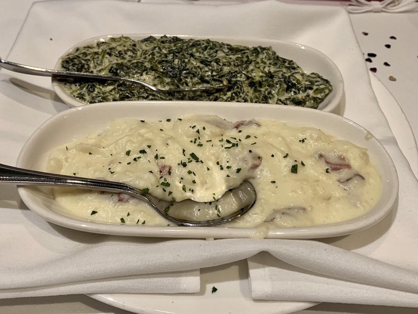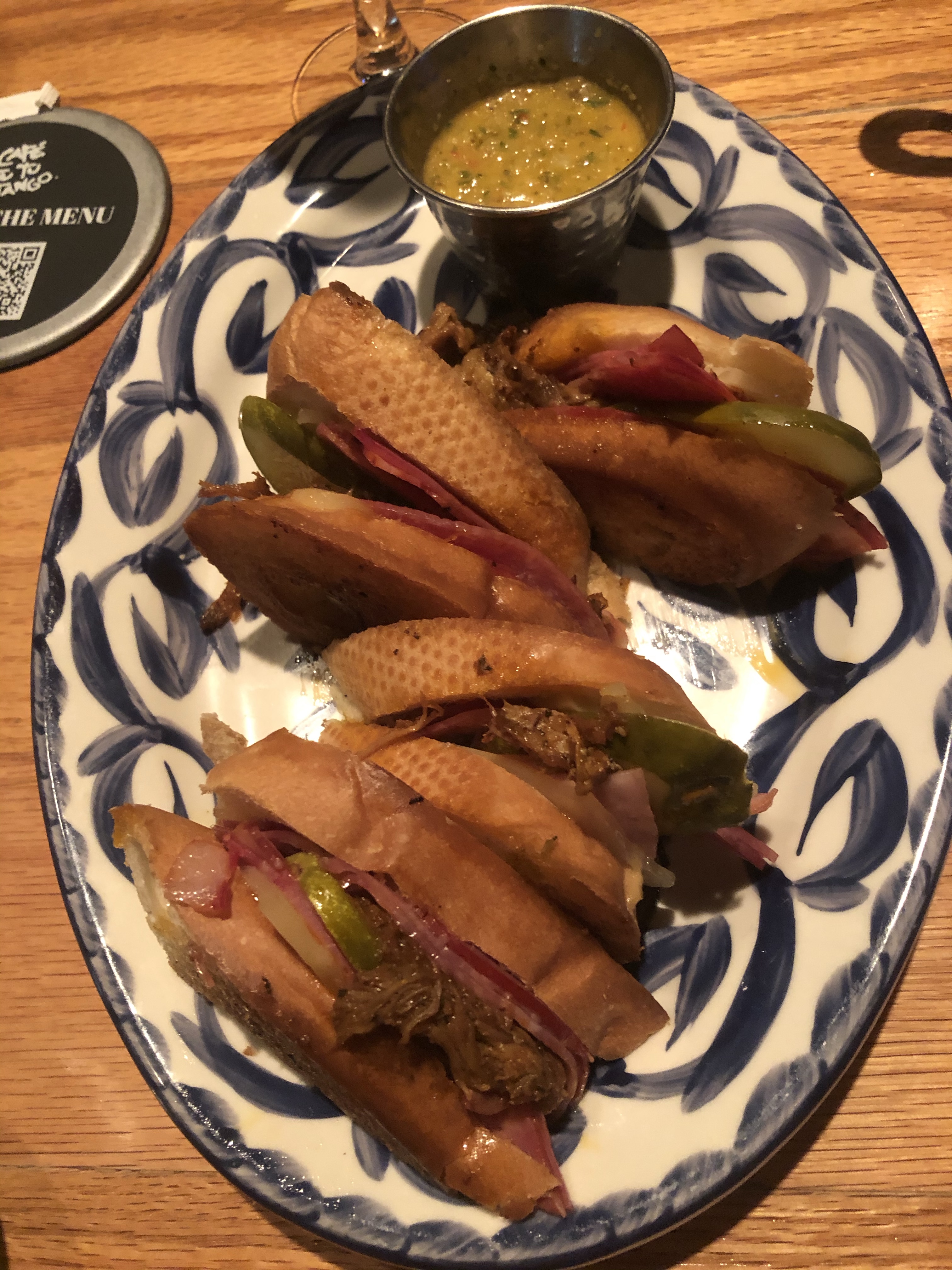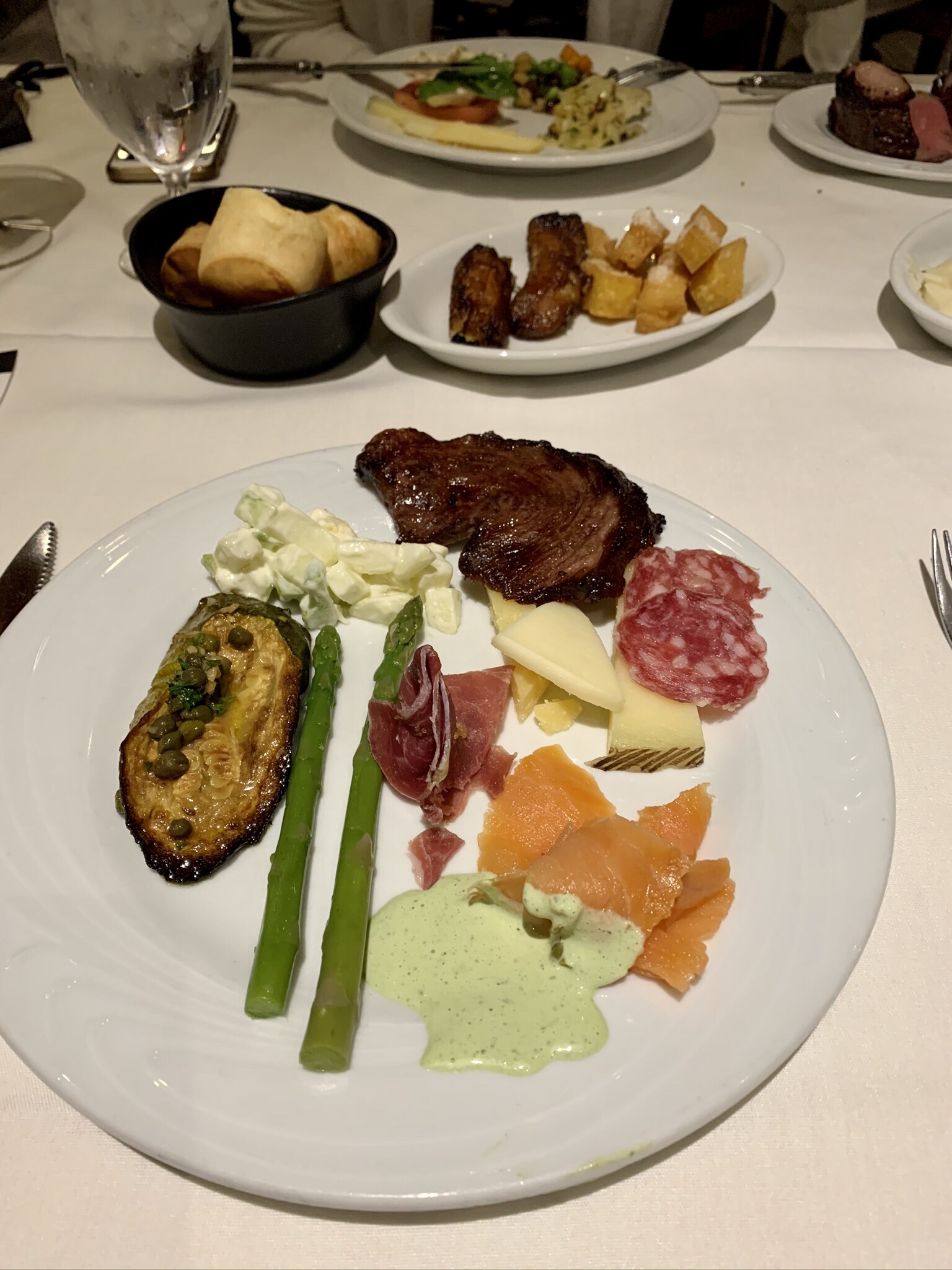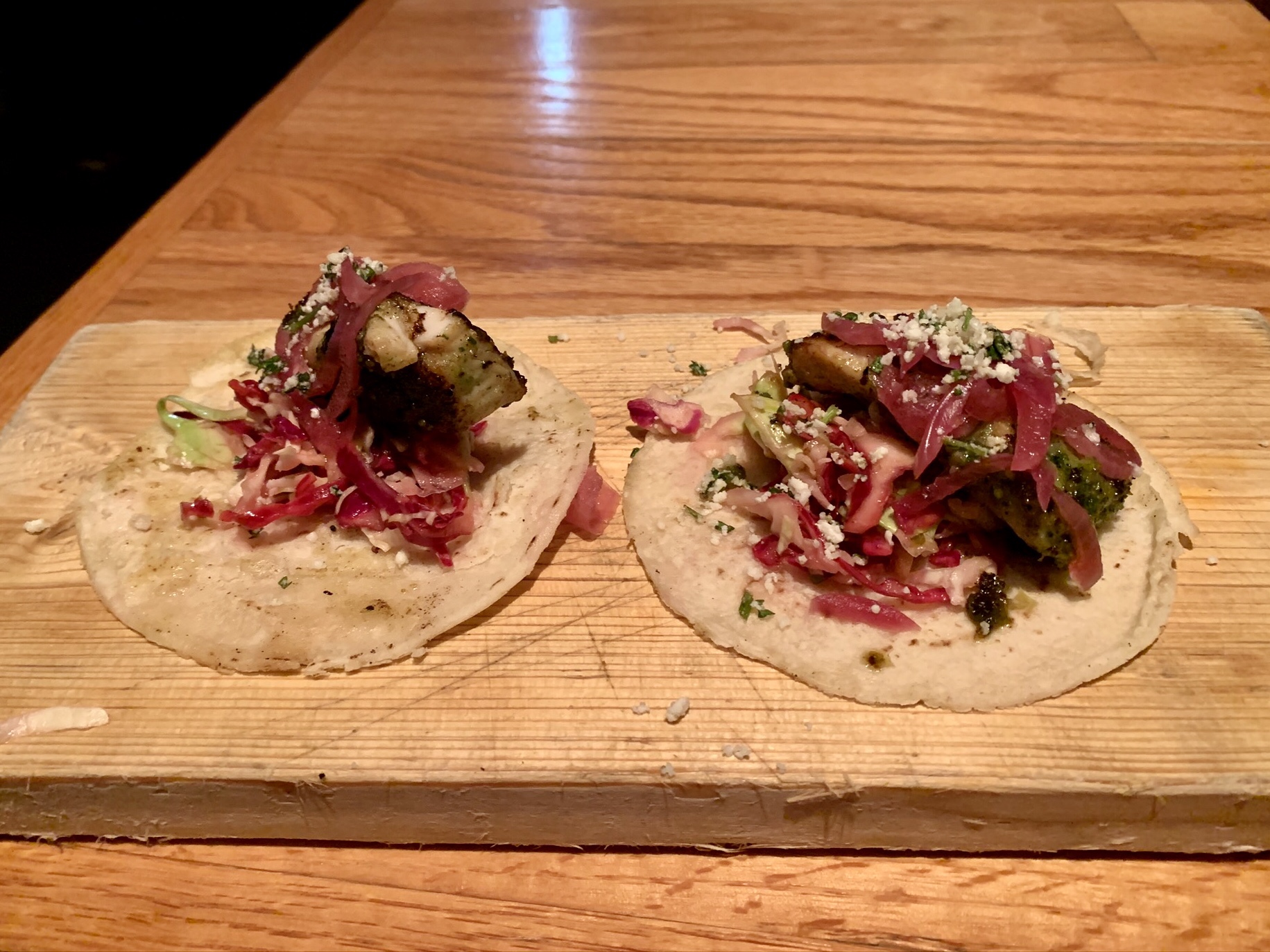 The service was impeccable and pleasant. They have a nice selection of interesting and unique crafted cocktails, so I ordered the “Hot tin tini” which was a chilled pineapple vodka infusion (and very good) and my wife ordered the Kim Crawford sauvignon blanc. We already knew what we wanted to eat so we ordered immediately (and we wanted to make sure we didn’t take too much time, it turned out that the service was so good it didn’t matter) and relaxed with our drinks and enjoyed the views and live music coming from the pier (with the exception of the occasional rum party boat passing by, which we always smile at because that’s just not our idea of fun but to each their own…).