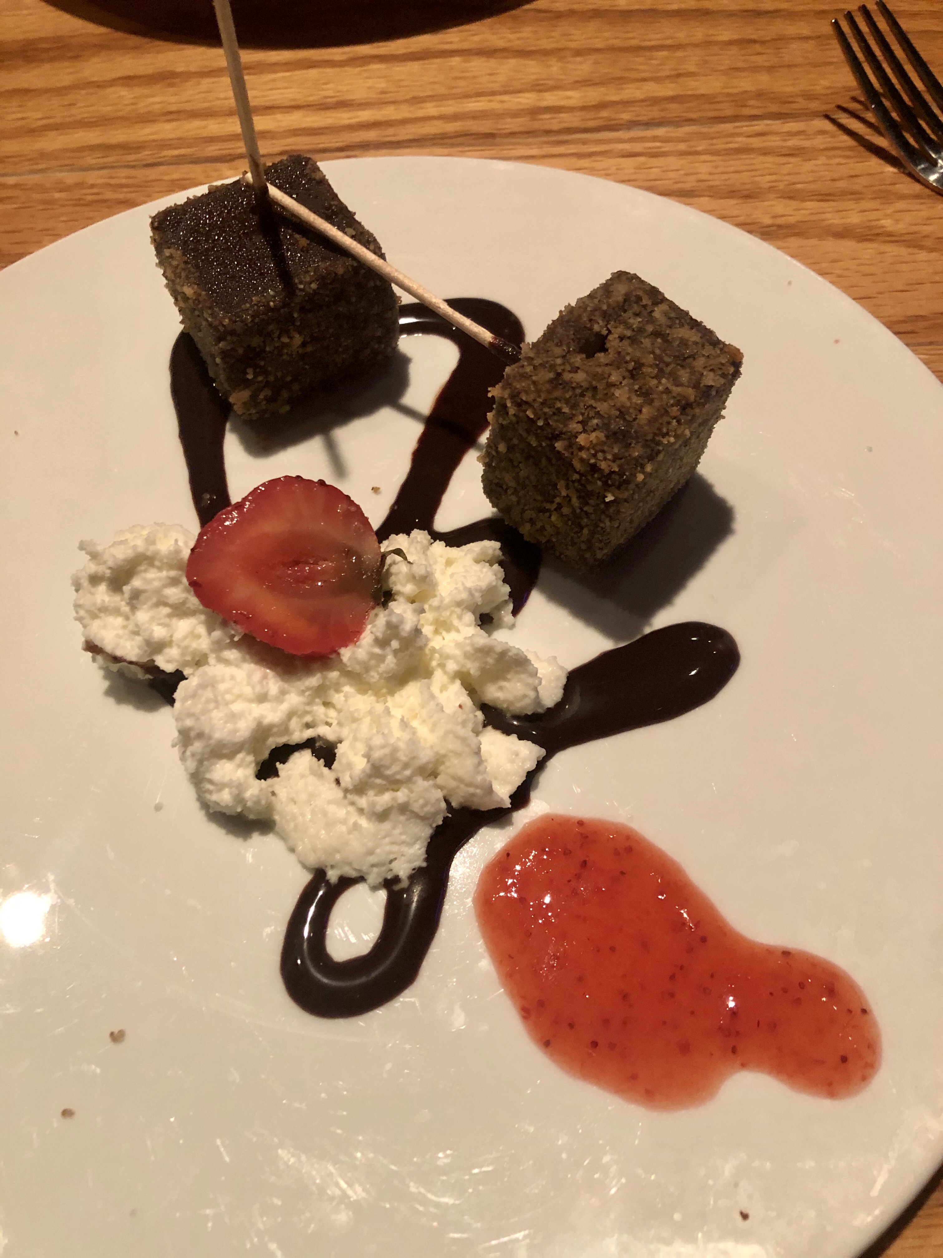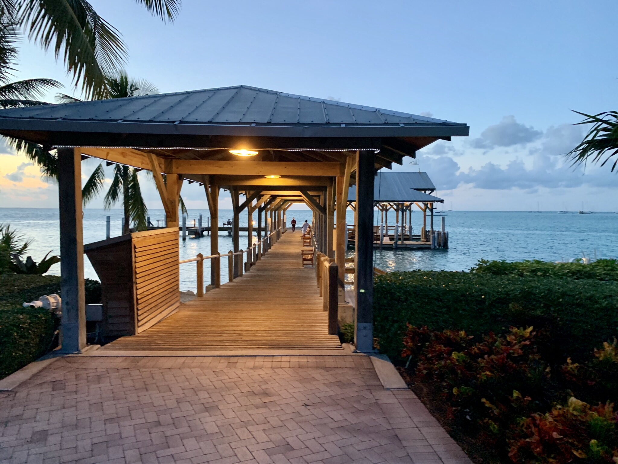 For appetizers we ordered the Burrata Salad with cucumber which was incredible, and we could have just eaten that and been happy. We then ordered the Lobster Mac and Cheese and the Beef Short Rib. Both were amazing and we appreciated the hometown comfort food vibe we got from them. Apparently, the menu changes nightly so this restaurant never gets boring and we would have gone back several times if we were staying longer. We wanted to save room for dessert and take them to go so we could enjoy them back at the hotel with the live music there (sadly we found out they were not having live music that night so we should have stayed and eaten our desserts by the pier). We ordered the Pineapple Rum Cake with Tahitian vanilla bean ice cream and the Key Lime Pie with a cashew graham cracker crust.