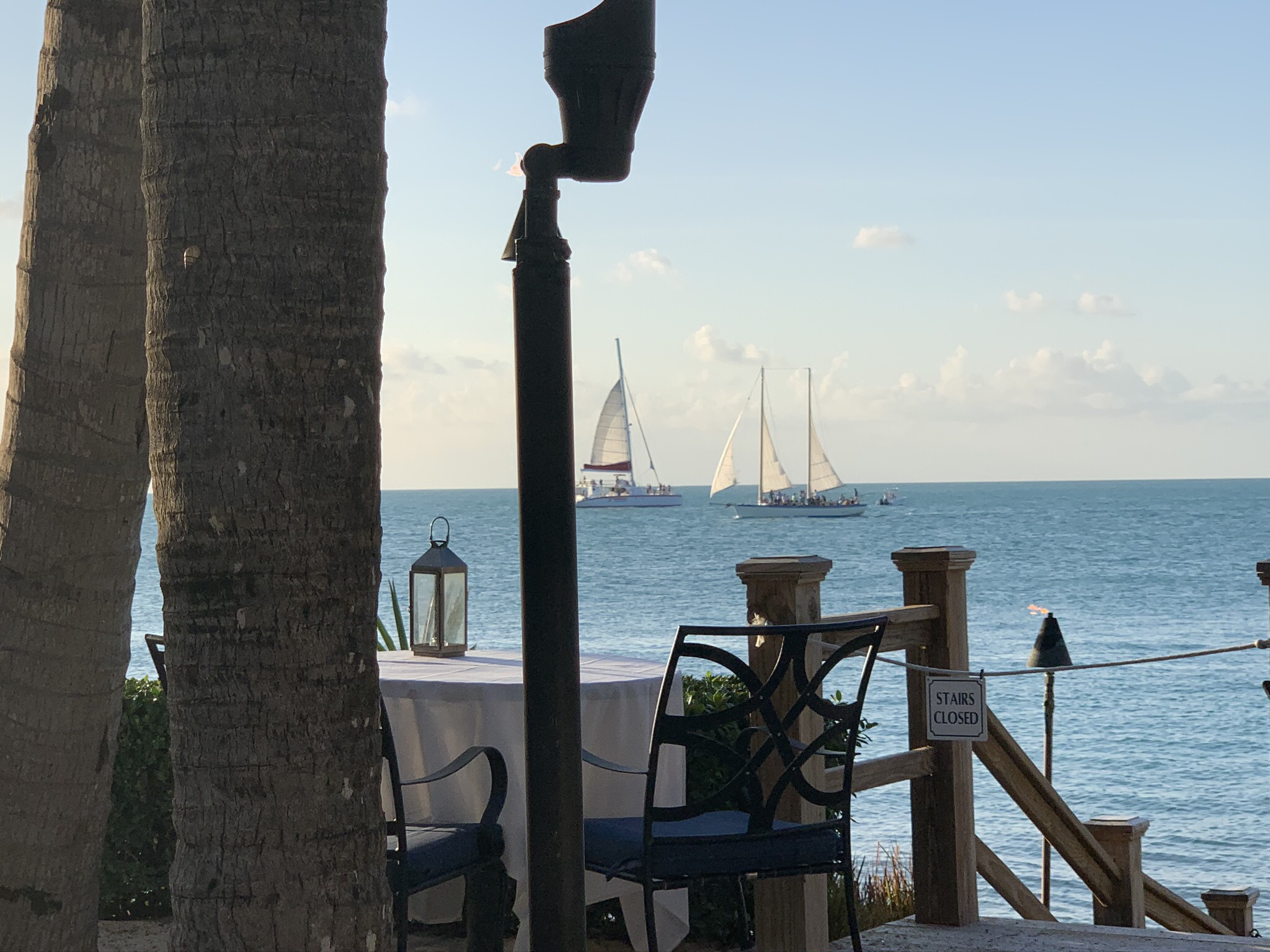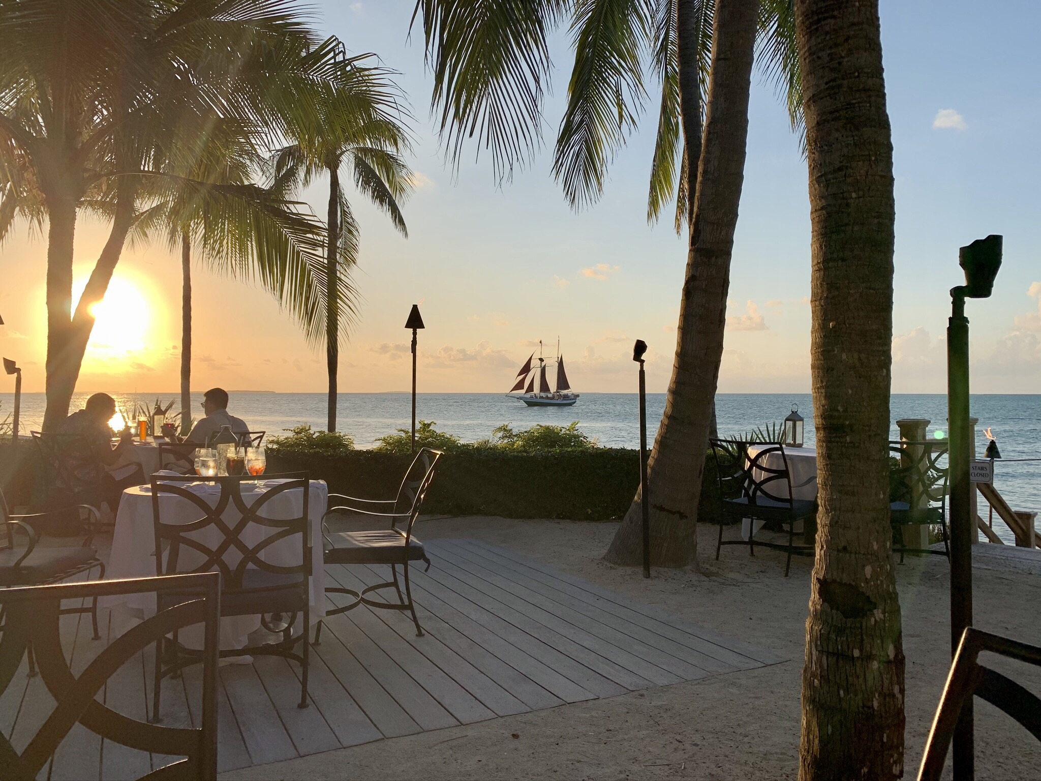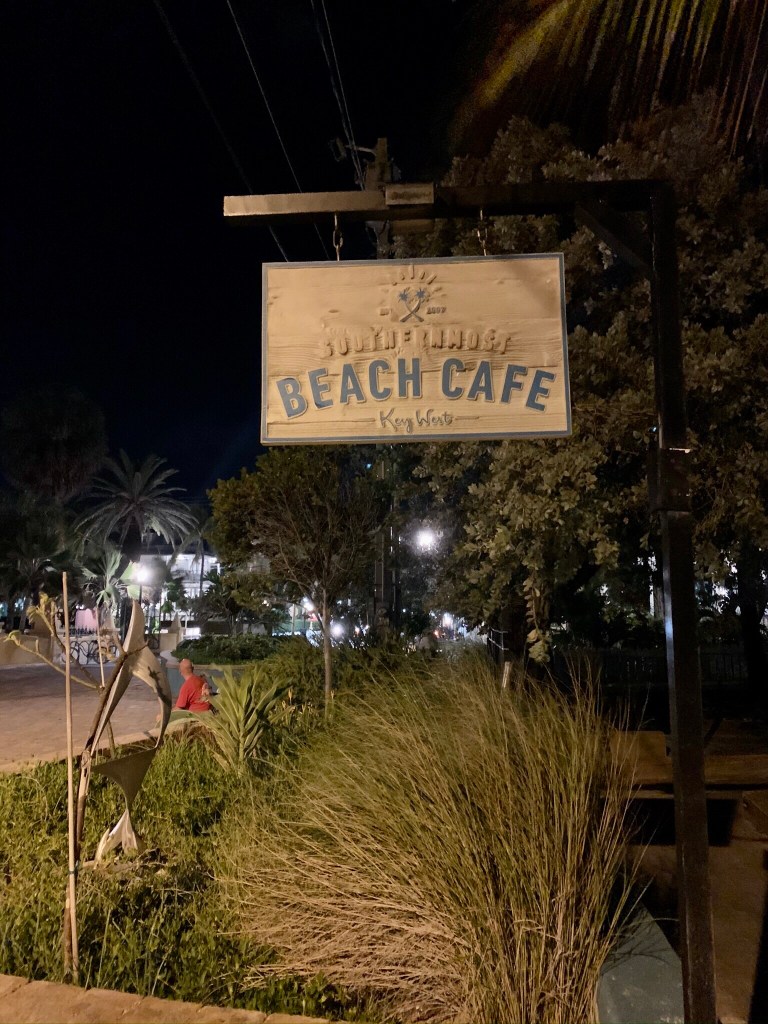 This has to be one of the coolest places to eat in Key West. It overlooks Key West Harbor and Sunset Pier and has spectacular views, especially if you go there in the evening when the entire pier lights up and is alive with people and music. The styling is Island whimsy and has a very interesting entrance and staircase. We had difficulty with the GPS finding the place as it is tucked around the corner close to the pier entrance. We had to go into the hotel (Ocean Key Resort and Spa) and ask where it was. Before we opened our mouths, they greeted us and said “looking for Hot Tin Roof” (so it must happen frequently).