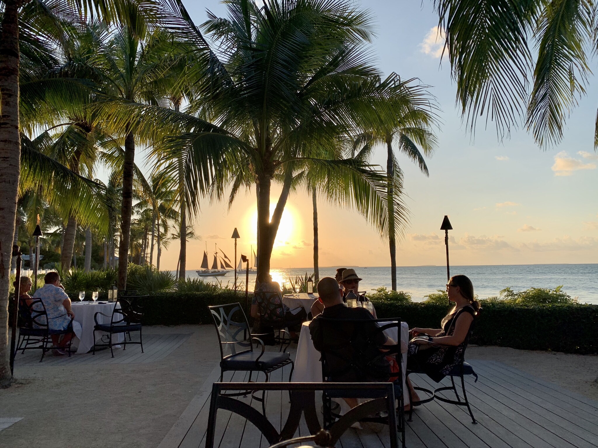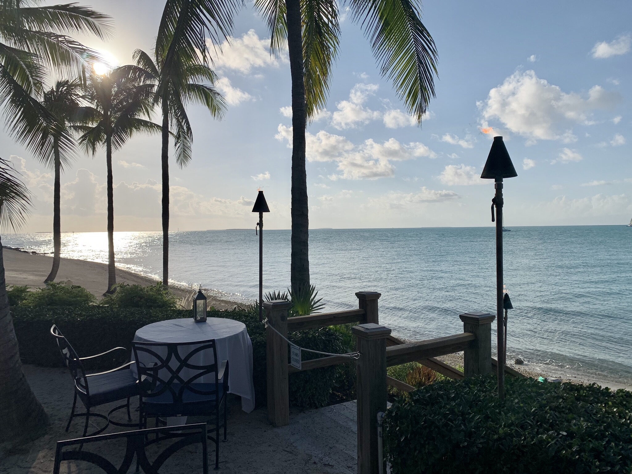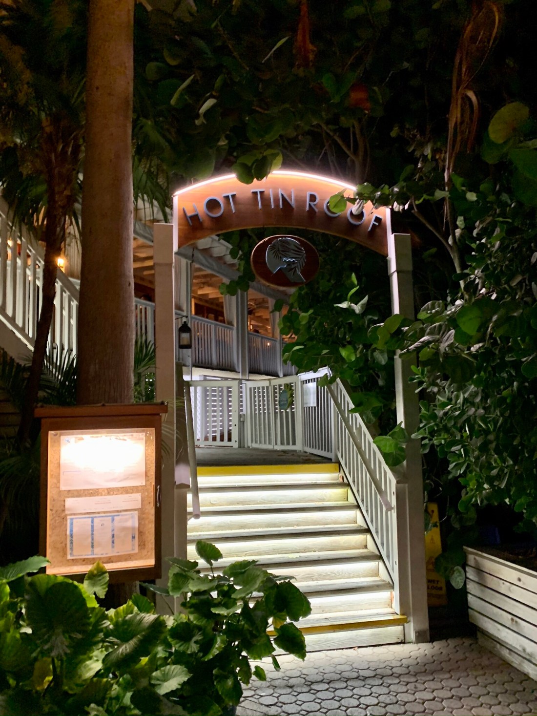 This has to be one of the coolest places to eat in Key West. It overlooks Key West Harbor and Sunset Pier and has spectacular views, especially if you go there in the evening when the entire pier lights up and is alive with people and music. The styling is Island whimsy and has a very interesting entrance and staircase. We had difficulty with the GPS finding the place as it is tucked around the corner close to the pier entrance. We had to go into the hotel (Ocean Key Resort and Spa) and ask where it was. Before we opened our mouths, they greeted us and said “looking for Hot Tin Roof” (so it must happen frequently).
